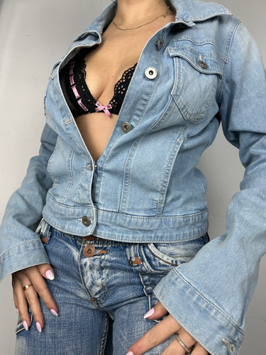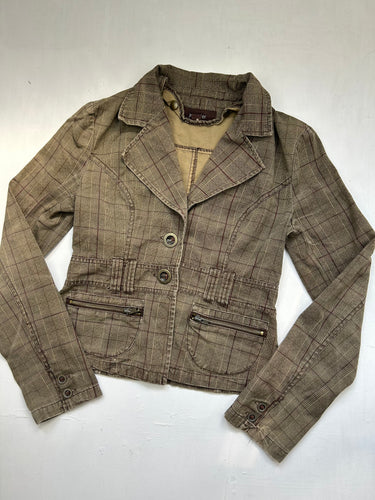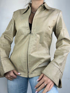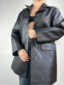Black pvc leather buttons up tight fit blazer jacket (M/L)