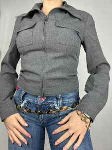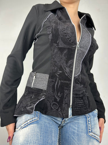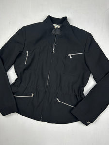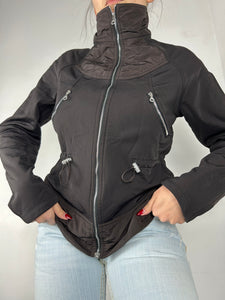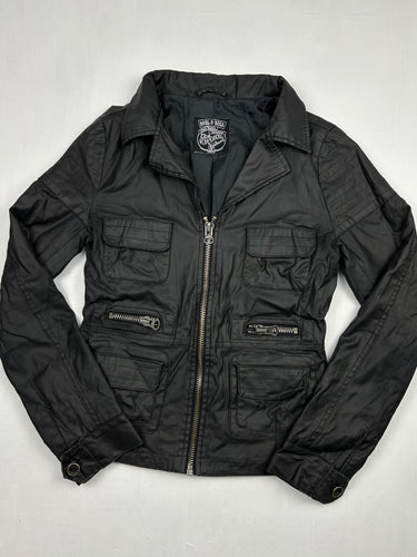 Black cotton ruched zip up tight fit shirt jacket (XL)