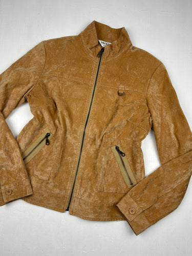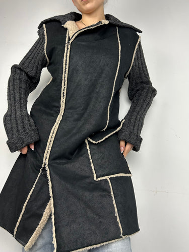 Beige inside fleece faux fur neck suede afghan coat (M/L)